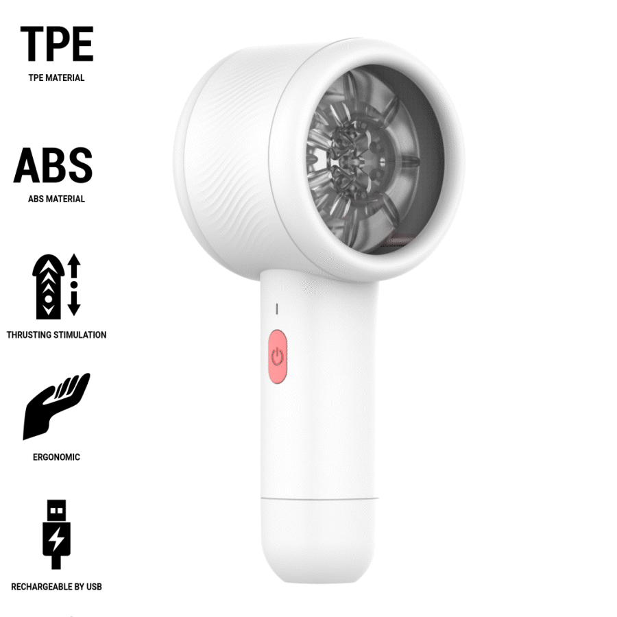 Cuenta con 7 funciones de movimiento telescópico y thrusting, junto con un deslizamiento extra potente que intensifica cada sensación. En su interior encontrarás una manga suave y flexible, fabricada con materiales agradables al tacto y un interior texturizado que estimula el pene mientras los movimientos están en funcionamiento.